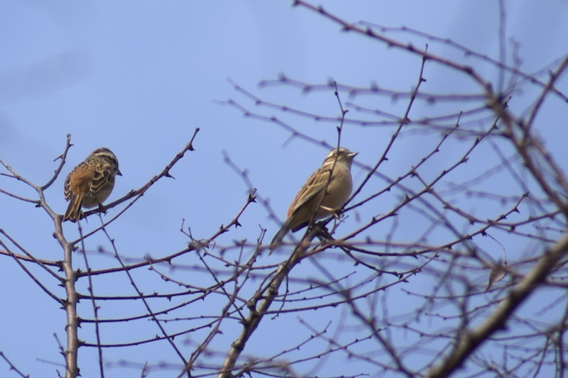 ホオジロ、ペアでさえずる
