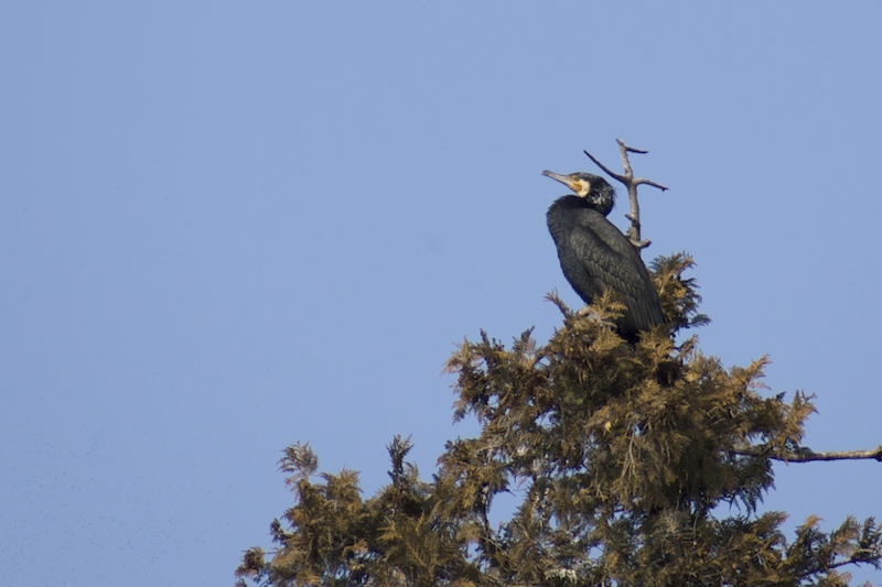 木のてっぺんでカワウが一休み。